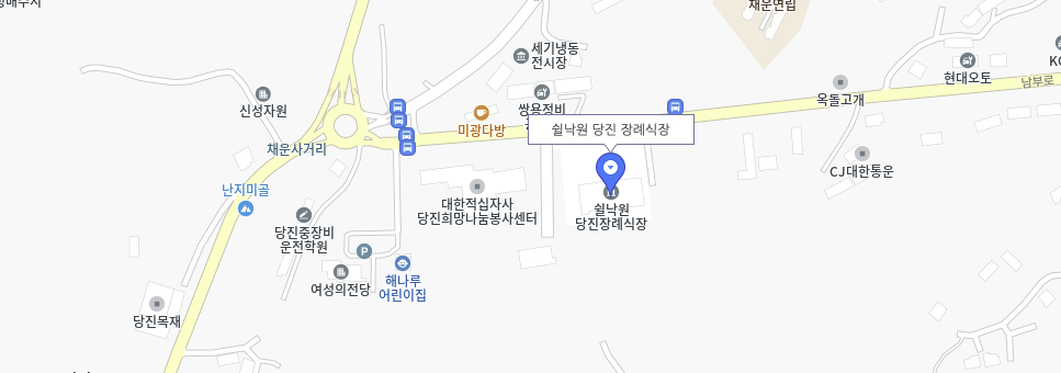 - “쉴낙원 당진 장례식장” 또는 “충남 당진시 남부로 28”